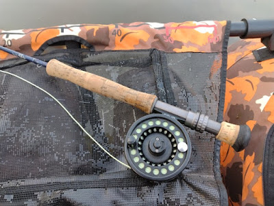 4時過ぎに目が覚めたので準備してすぐに出発。この日も1番乗り&独り占めを期待したが、5時前に到着するとすでに車が3台停まっている。前日までよりも多少気温が下がる予報に人間の活性が上がってしまったのか。。。ただ、私が釣りたいエリアは空いていたので5時過ぎからスタート。今回はデカいテレストリアルのフォームドライをインジケーターというか浮き代わりに、ティペットをやや長めの50cmくらい取って6番のウーリーバガーで中層を狙う作戦でやってみることに。